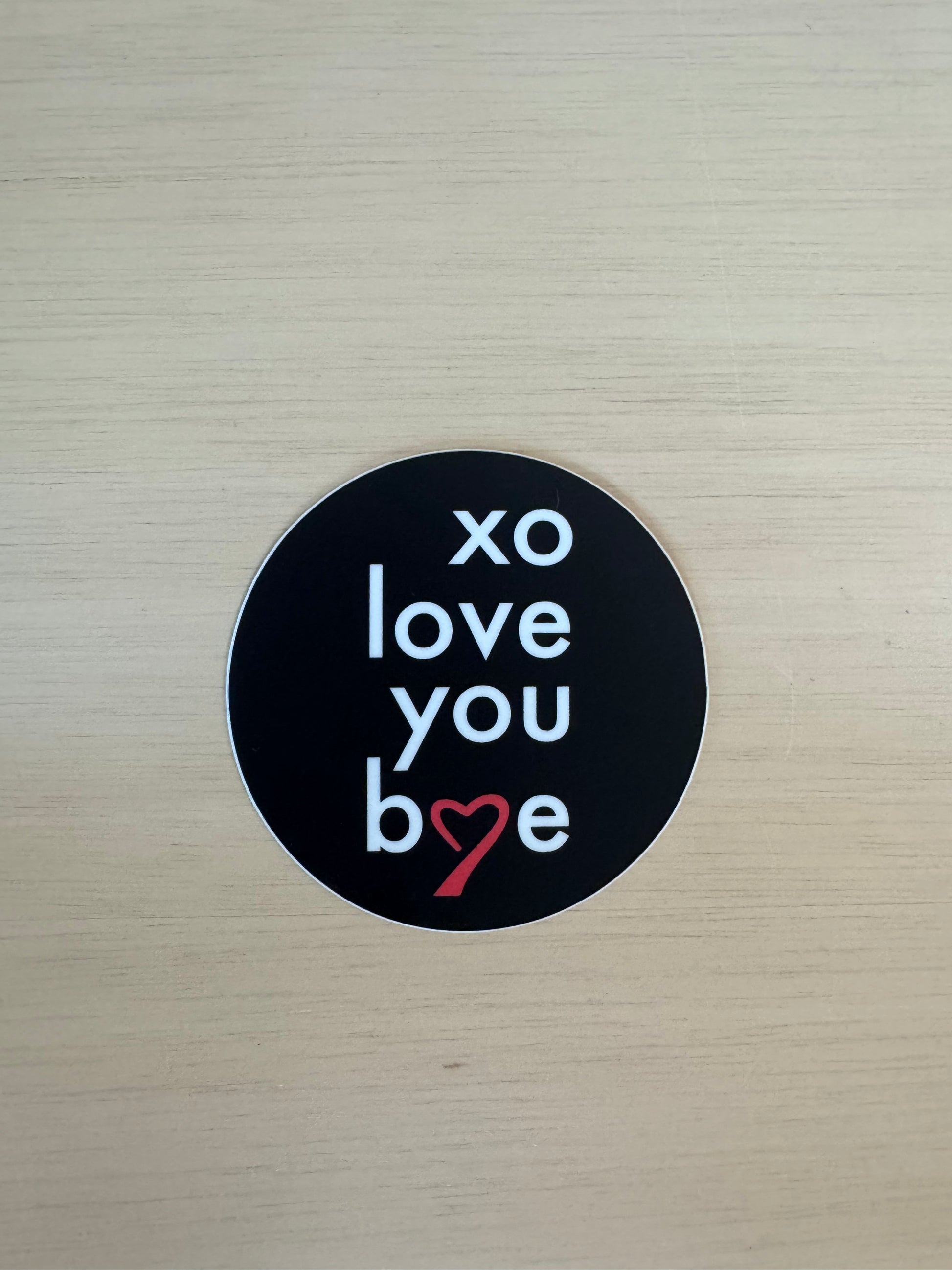 Original xo love you bye sticker! Perfect for your water bottle, laptop, camping cooler, or anything else that needs some hype!